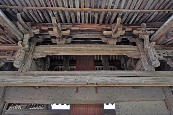 孝善坊位于乐清市虹桥镇溪西村南首,建 于绍兴二十九年 (1159),弘治十五年 (1502) 重建。清光绪 《乐清县志·坊表》 载:“孝子连世 瑜立在峃前,明朱谏重建孝善坊记宋孝子连世瑜 ……后孝子墓在横山祠在鹤峰新立门之侧。” 孝善坊坐北朝南,单间六柱 (左右两正柱 前后各添一柱支承出檐) 三楼木石结构建筑, 悬山顶。坊用材粗壮,中间石柱,断面四方倒 角,前后置抱鼓稳固,下做长方形石台基,用 条石叠成。前后木檐上置二道月梁。石柱中间架额坊两道,额间置石栏板,阴刻“瑜之门” 三字,前后置撩檐坊和雀替,悬山顶中间置两 跺斗拱,前方双下昂,两侧各置垂莲柱,东、 西两侧与中间相似,屋面前后置飞椽,筒瓦花 檐滴水,脊饰龙尾吻。正面两额枋间悬挂“孝 善坊”匾额。孝善坊为宋朝虹桥横山连氏先人一代孝子 连世瑜所立。虹桥峃前连氏七世祖连世瑜乃名 闻南宋的大孝子, 《温州府永嘉谱》 载:连世 瑜,乐清人,同妻方氏,事母至孝。母死刻木为像。崇奉虔益虔。手足幻动,晨昏进食,寒 暑更衣。子士表,士则供养木母愈恭。连世瑜 在家行孝事母同时,不忘教子以学。他三个儿 子就读于王十朋的梅溪书院,奋发有为,三人 都中举人,授太子詹事。其事迹经永嘉郡守张 九成及里人乡贤、居家未仕的王十朋来家核实 后上书朝廷。王十朋叙并诗如下:“横山连孝 子,妻方氏者,奉姑甚谨。姑死,刻木肖像, 事之越十年不怠。郡守张公子韶下车,命诸邑 访孝义。余被邀至其家,获睹木像,感叹不已, 自书四十字。绍兴丙子 (1156) 七月十四日是 也。纯希世稀有,事亡人所难。堪嘉里曾子, 况有妇丁兰。守会方尊孔,乡闾竞耸观。名将闻帝阙,旌表及门阑。南宋绍兴二十九年 (公 元 1159 年),朝廷钦赐“孝善”立牌坊于横山 下马桥,南宋名臣刘黻、元代文学家李孝光等 为坊题额、作记。