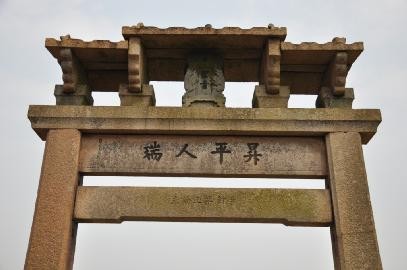 升平人瑞坊位于瑞安市曹村镇曹北村水口 宫东侧,建于清乾隆二十三年 (1758),属花岗 岩质石构建筑。单间二柱三楼式,歇山顶,通 面宽 3 米,高 5.4 米,两柱前后均用抱鼓石稳 固。明间设下枋、花枋、定盘枋,定盘枋上有 四只石斗栱托起屋顶,中间楼阁嵌石匾,正反 两面均竖刻“圣旨”,二升龙饰。正反两面花枋 上刻“升平人瑞”四个大字,正面落款处竖刻“乾隆二十三年秋月吉旦”,下枋正反两面均刻 “荣封梁玉纶立”。