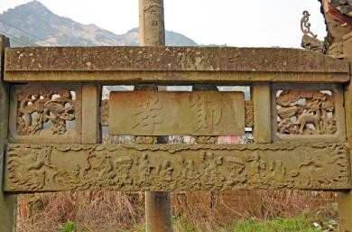 王氏节孝坊位于永嘉县上塘镇路口村至三 元堂,坐北朝南,建于清代,现存单门两柱, 定盘枋下基本完整,青石仿木结构。残坊高度 2.31 米,面阔 0.31 米。柱上刻有坊联“九秩遐 龄同寿石,六旬苦节永贞珉”。定盘枋上刻“族 表处士廖应信妻王氏节坊”,下枋中间雕刻“八 仙过海”图案,枋两侧刻龙首纹饰。下枋上设穿枋高栱柱,穿枋高栱柱中间单独设花板,上 面阳刻“节孝”两字,花板左右有镂空雕刻蝙 蝠装饰,上下有寿桃装饰。穿枋高栱柱两侧置 镂空雕吉祥图案花板,右边刻鹿衔仙草,左边 刻松鹤延年。据村民介绍,牌坊曾遭破坏,后 搬移至此,坊柱前后石抱鼓均遗失。